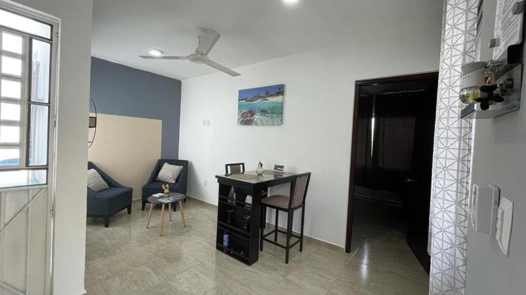 Departamento Orellana 11 es un alojamiento con terraza que está en Chetumal, a 2 km de Playa Dos Mulas. Este apartamento dispone de parking privado gratis, recepción 24 horas y wifi gratis. Este apartamento con aire acondicionado consta de 1 dormitorio, una sala de estar, una cocina totalmente equipada con nevera y cafetera, y 1 baño con bañera o ducha y artículos de aseo gratuitos. Hay toallas y ropa de cama en el apartamento. El aeropuerto (Aeropuerto internacional Chetumal) está a 4 km, y el alojamiento ofrece servicio de traslado de pago para ir o volver del aeropuerto.